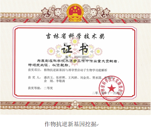 实验室在遗传资源的筛选、创新与利用、重要功能基因的克隆与鉴定、作物遗传转化和转基因作物新品种的选育三个层次研究方面,取得一些突出成果。其中,2020年“植物抗逆新基因和诱导型启动子功能解析”获得了吉林省自然科学二等奖。