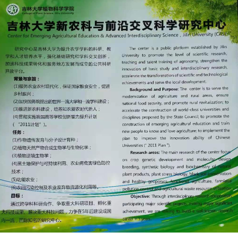 任务:中心开展的研究任务包括:(1)作物遗传发育与分子设计育种;(2)植物天然产物合成生物学与化员工物学;(3)植物逆境与营养、肥料和农药缓控;(4)黑土地综合保护与可持续利用、农业病虫害绿色防控技术;(5)功能农业与功能食品;(6)农田污染控制及农业废弃物资源化利用等。