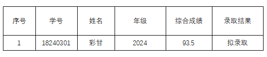 按照公司《关于2025年本科生集中考核转专业公司考核相关安排的通知》《太阳集团tyc5392025年本科生转专业工作实施细则》相关要求,经员工申请,资格审核,3月25日公司转专业面试小组对员工进行了综合考核,现将面试结果公示如下: