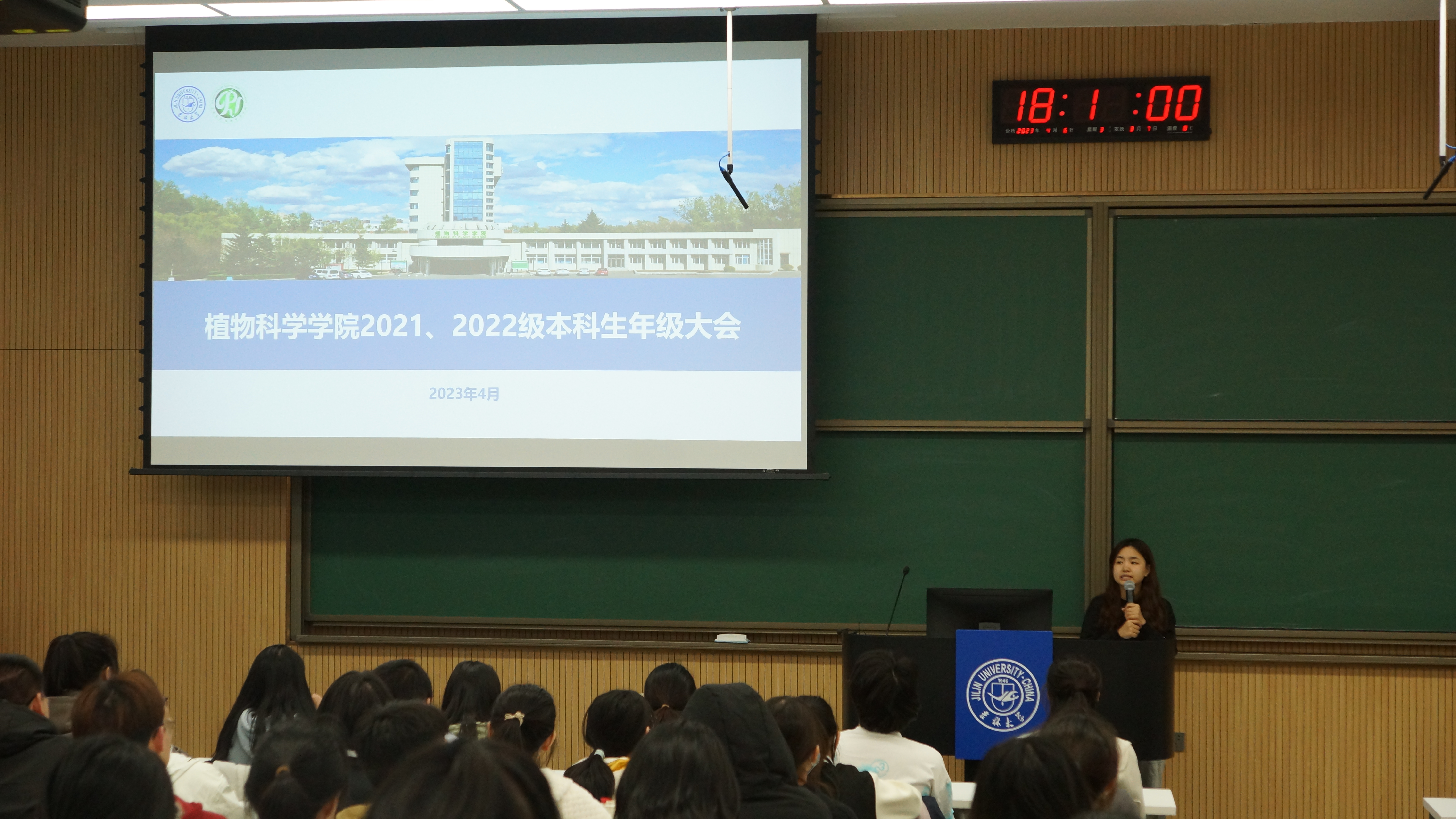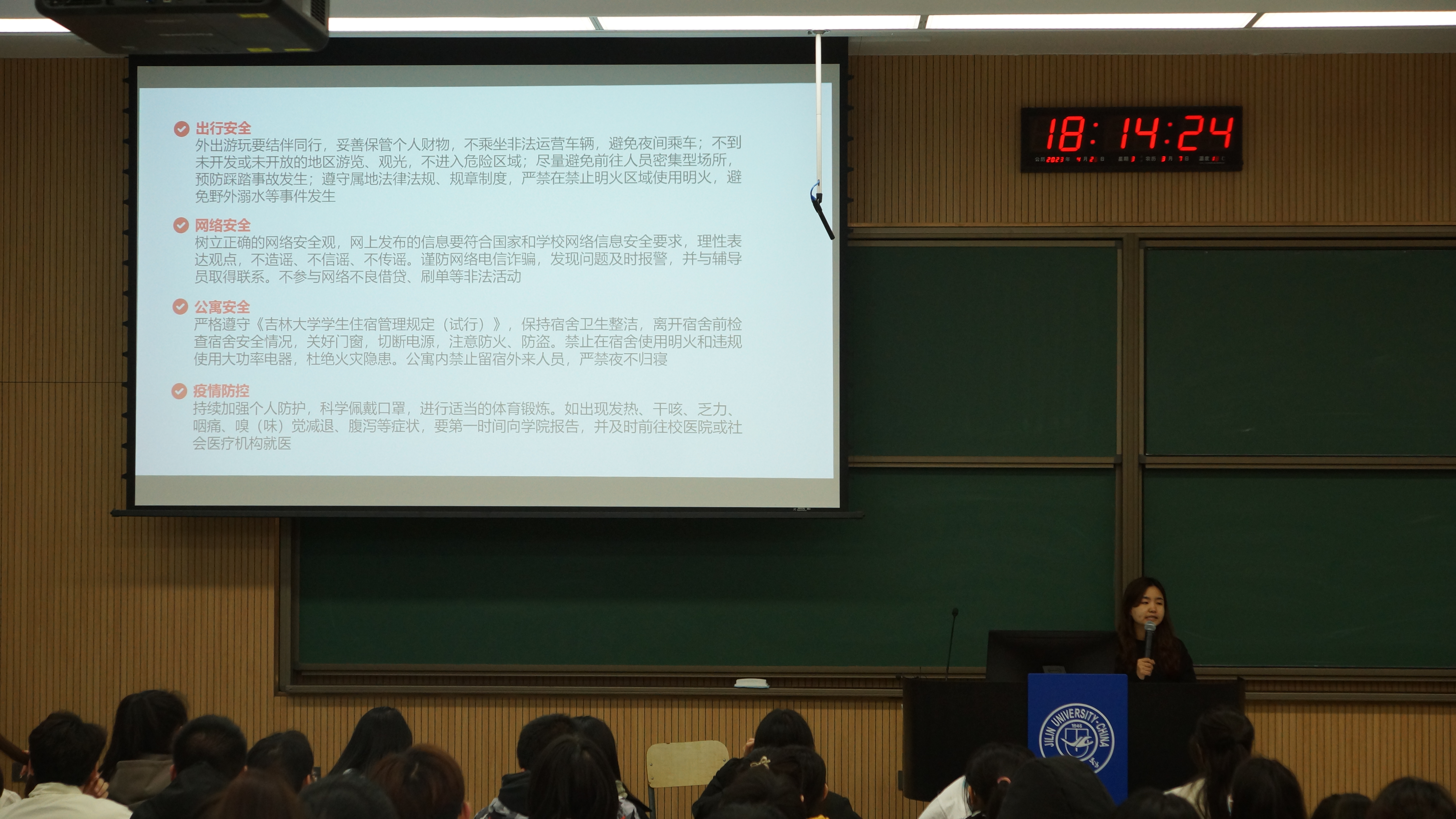 为进一步做好五一假期员工安全教育和校园安全管理工作,增强员工的安全意识和自我保护意识,4月26日晚,2021级、2022级本科生年级大会于和平校区科学讲堂100阶梯教室召开,会议由辅导员高梦玉主持,2021级、2022级全体员工参加此次会议。