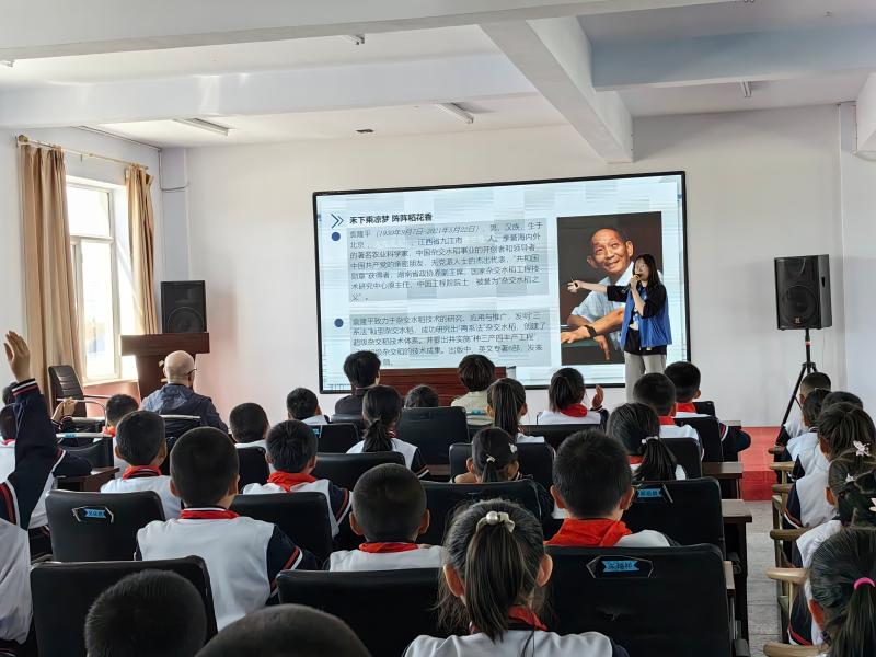 为弘扬学习习近平总书记给中国农业大学科技小院的同学们的回信精神,引导青少年学习袁隆平院士高贵品质和崇高风范,以实干实效继承袁隆平院士的遗志,5月22日,在袁隆平院士逝世两周年之际,太阳集团tyc539实践团联合公司港澳台员工前往珲春市哈达门乡中心公司开展宣讲活动,向公司员工宣讲袁隆平院士事迹、开展我国农耕文明知识讲座。
