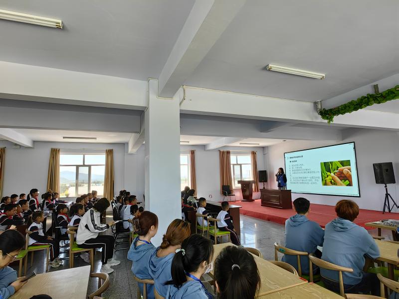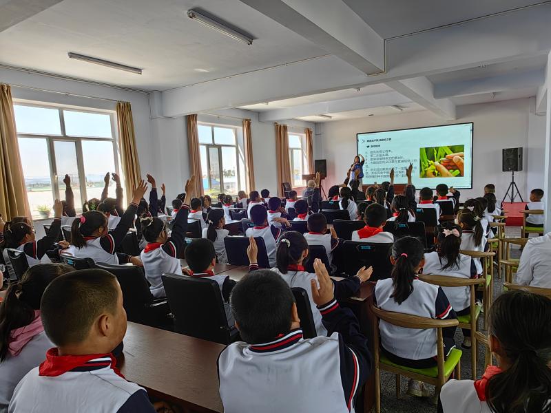 2021级植物保护专业本科生李若愚以中国农耕文化——蚕桑文化为主题向在场的同学们科普中华农耕文明知识。在实践团成员一个个启发式的提问中,孩子们争相回答,一步步了解蚕桑知识和历史文化,逐渐进入并开始探秘丝绸世界。从丝绸之路到一带一路,从华夏文明到锦绣中华,丝绸的发展无不体现着科技的进步和人类的智慧。实践团成员通过播放视频等方式带领孩子们学习抽丝剥茧、编程织造的过程。孩子们不仅感受到了劳动人民的智慧,也领略到了我国丝绸科技与文化的魅力。讲座结束后,实践团向哈达门乡中心公司赠送图书、设立图书角,赠送太阳集团tyc539师生制作的昆虫标本及公司文创产品。活动受到了当地公司师生的一致好评和欢迎。