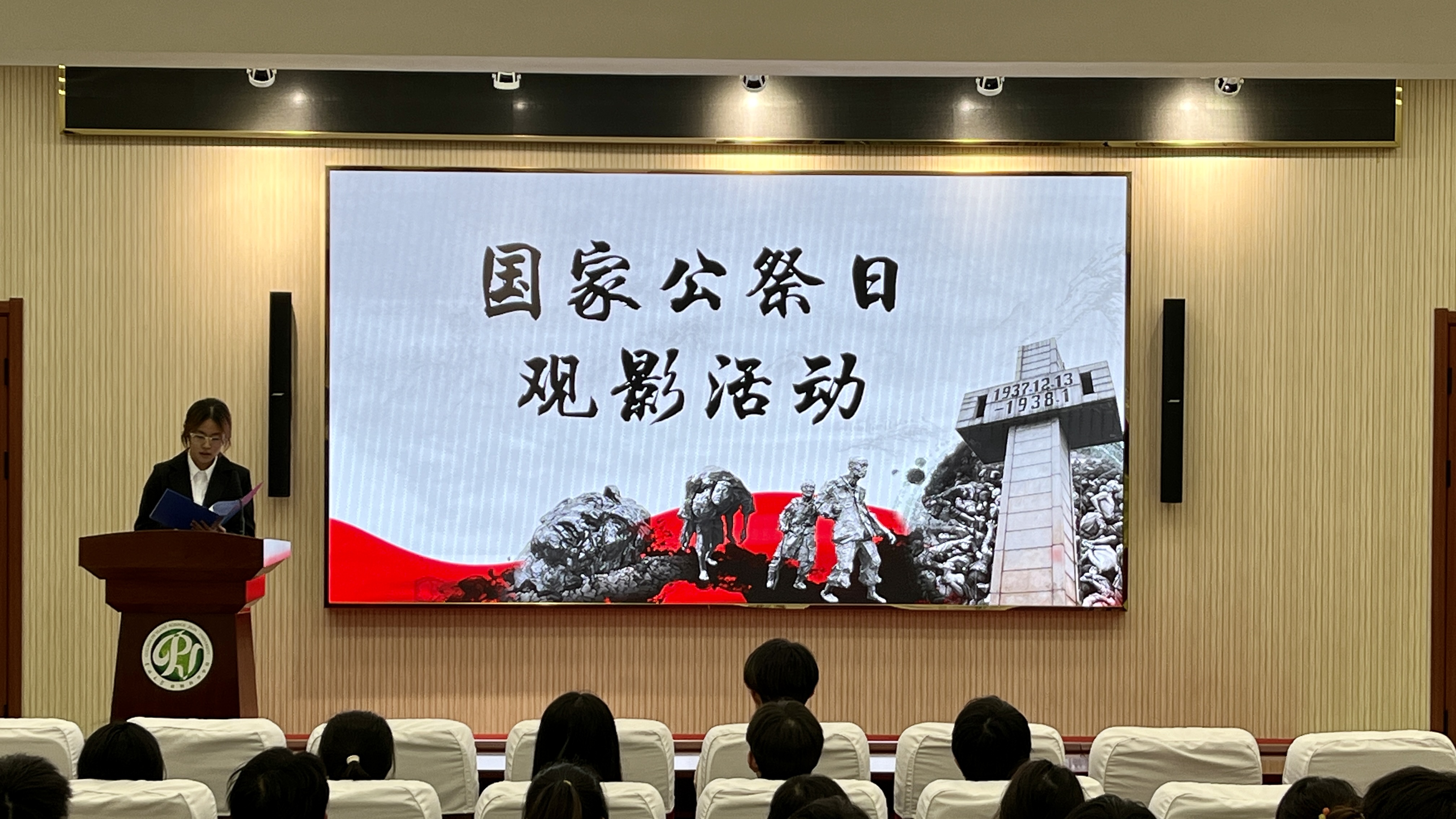 12月13日晚六点半,同学们在公司报告厅观看了以南京大屠杀为历史背景的电影《南京!南京!》。影片由陆川执导,刘烨、高圆圆、范伟等主演。影片通过一名普通日本士兵和一名普通中国士兵在南京大屠杀期间的经历,揭示了战争对人性的摧残。也揭示了侵华日军对中国人民对残暴罪行。观影结束后,同学们表示南京大屠杀是中华民族心中的伤痛,硝烟虽已远去,但国耻民殇不应忘记,我们绝不能忘记,也绝不会忘记。新时代青年应当牢记历史、不忘过去,珍爱和平、开创未来。