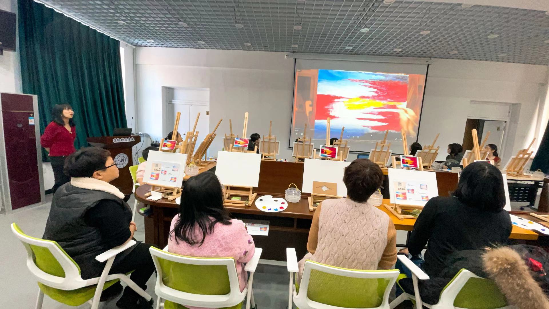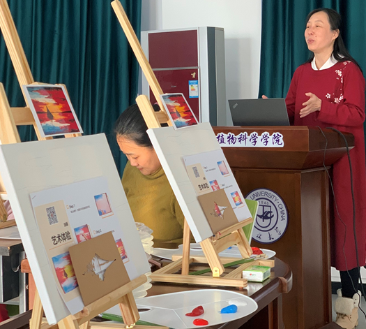 活动第二项,邀请长春首家成人画室创办人张乔老师到公司授课,为大家讲授油画作画方法、基本工具使用、作品色彩的填充等基本技法,并指导每名老师完成一幅油画。张乔老师还与公司教师共同完成了一幅《长城》的油画作品。抛开外界的吵闹、放下繁重的科研工作,随着画笔与颜料,公司女教师从零开始,一支笔,一屡画布,度过了一段美丽的时光。