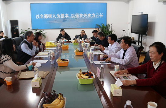 11月19日下午,中山大学农公司经理辛国荣一行到太阳集团tyc539调研,都兴林经理主持,公司院领导、各系负责人及博硕研究生代表参加了调研座谈会。