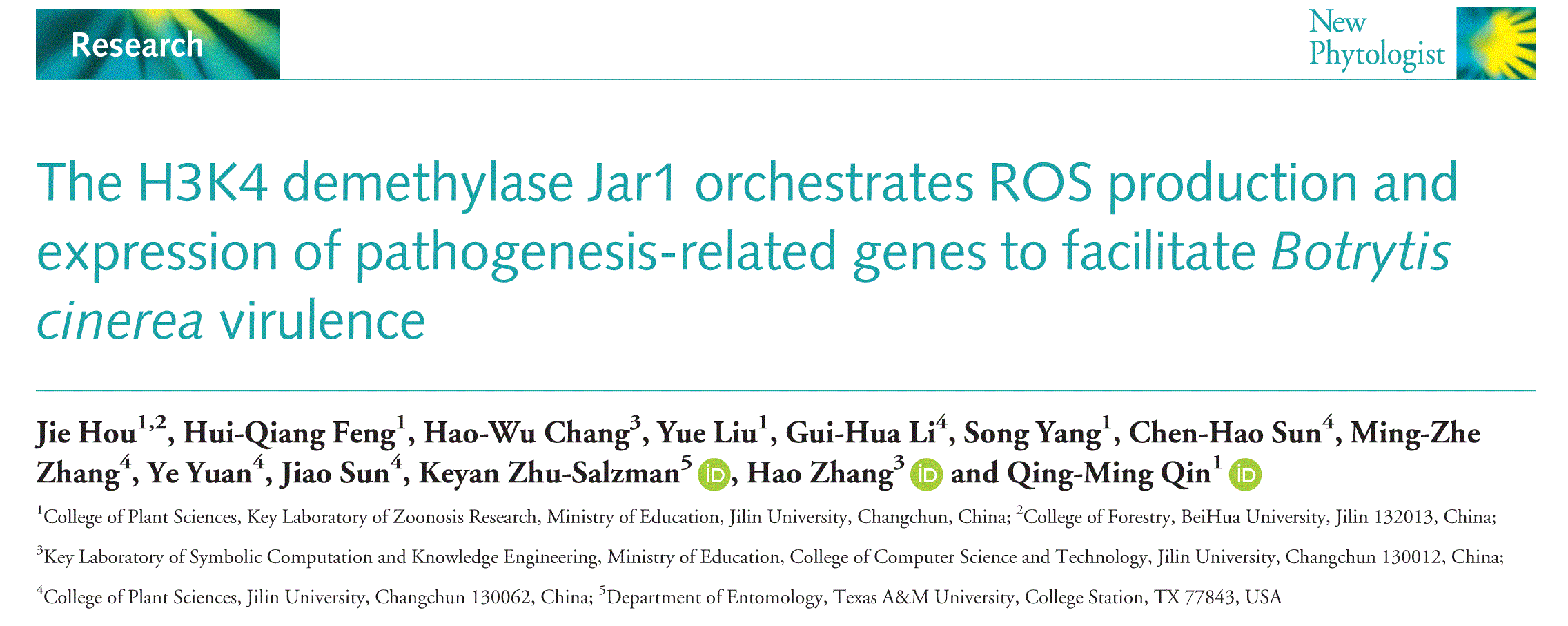 在病原-寄主互作过程中,组蛋白翻译后修饰在病原侵染和寄主防御过程中都发挥着重要的作用。去甲基化是一种重要的组蛋白翻译后修饰,但对于病原菌组蛋白H3赖氨酸4(H3K4)去甲基化酶JARID1(Jar1)/KDM5的功能及其调控病原发育和致病机理我们知之甚少。近日,太阳集团tyc539秦庆明教授团队在New Phytologist发表了题为“The H3K4 demethylase Jar1 orchestrates ROSproduction and expression of pathogenesis-related genes to facilitate Botrytis cinerea virulence”的研究论文。该论文系统地阐述了灰霉病菌组蛋白去甲基化酶BcJar1在病原菌生长、发育及致病等过程中的功能,解析了BcJar1通过精细调控内源活性氧ROS产生、隔膜蛋白Septin的聚集和正确装配及致病相关基因表达促进其毒力的调控机制。