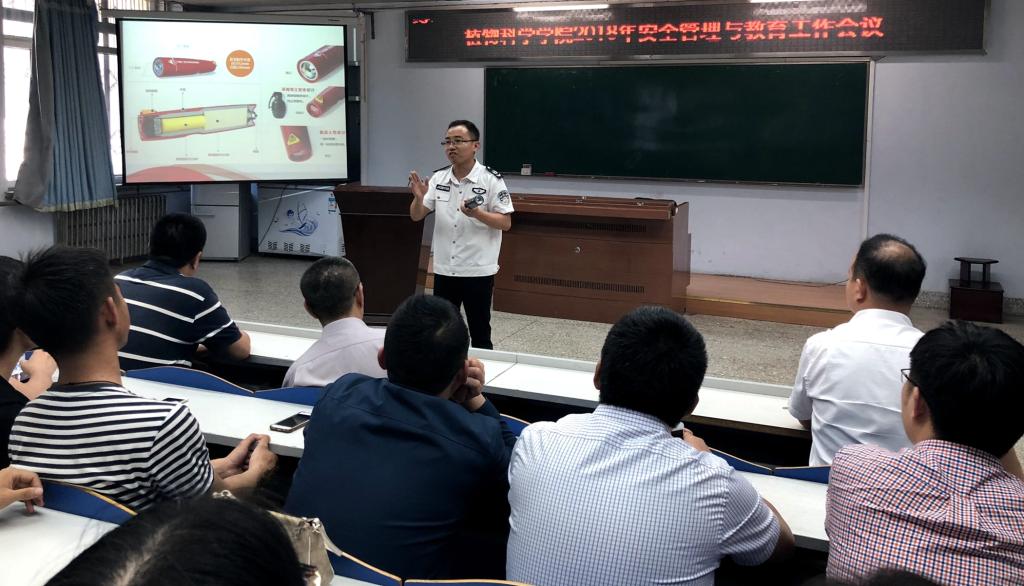 会上,长春市安家消防知识服务中心陈野教官从当前高校及社会消防安全重点、消防安全责任、消防安全实例及消防安全防范等方面了进行了知识讲座。