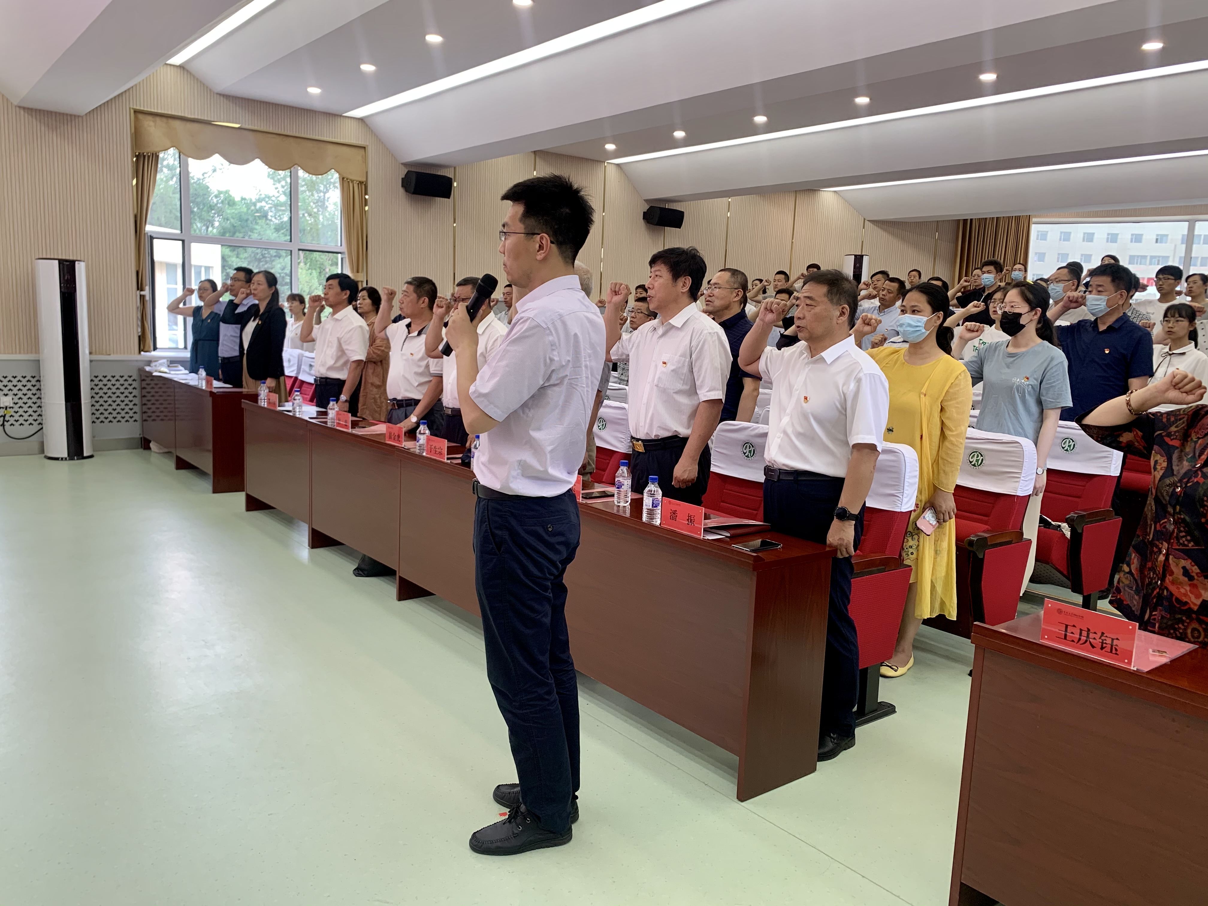 会上,全体党员面向鲜红党旗,在公司党委副书记兼副经理潘振同志的带领下庄严宣誓,用铿锵有力的誓言,表达了对党的庄严承诺和为党为人民服务、为教育事业奉献终身的坚定信念。