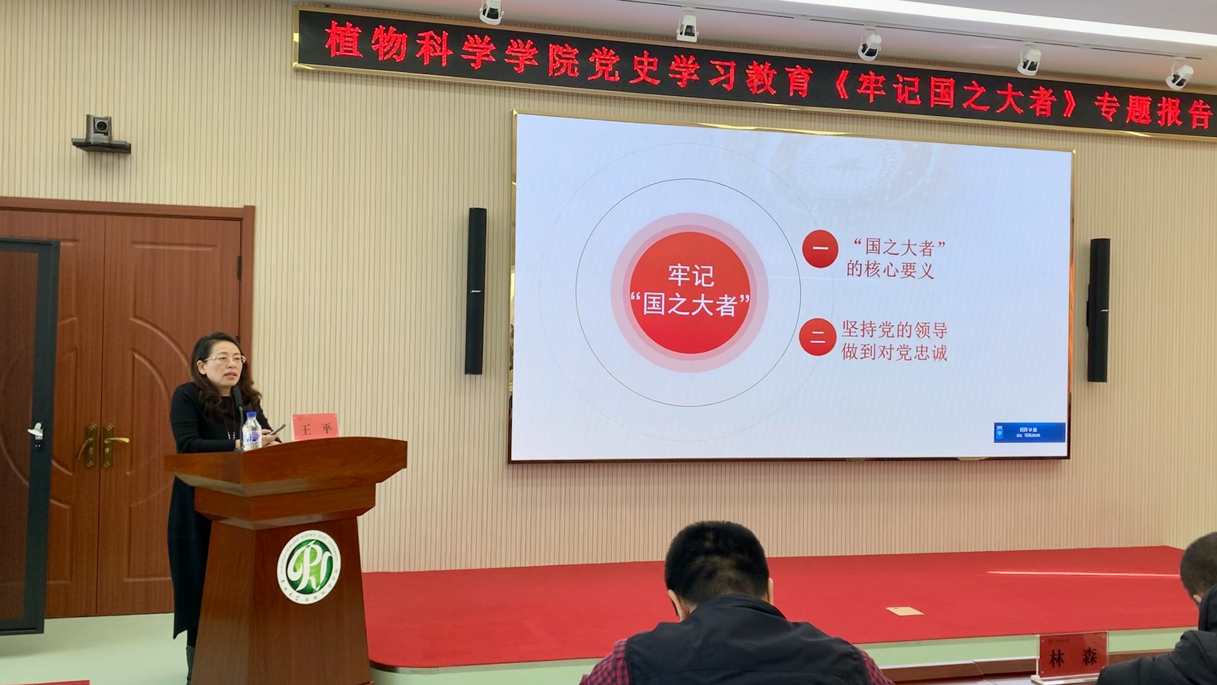 王平教授以《牢记国之大者》为题,从“何为国之大者”、“怎样做到牢记国之大者”两个方面深刻阐述了国之大者的核心要义,深刻解读了牢记国之大者的丰富内涵,就如何做到对党绝对忠诚提出了指导性意见。王平教授希望,公司全体党员要牢记使命,结合工作学习实际,认真思考,要将《牢记国之大者》融入到工作中。