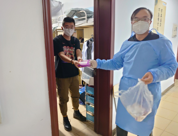 “我不是一个人在战斗”。入驻的第二天,秦建春就着手从研究生、楼内后勤管理和服务保障人员中择优组建志愿者服务队。结合工作需要,秦建春向每名志愿者分配了工作任务,有人负责楼层值守、有人负责对接各个公司研究生,有人负责餐食配送,等等。“一个人的力量实在有限,有一支人员精干、分工明确、运转有效的志愿者队伍,我的心里就有底了”,秦建春这样说。
