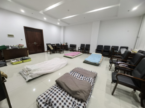 临危受命,用最阳光的心态迎接每一个任务。3月11日,高梦玉老师作为公司唯一一位本科女辅导员,第一时间进驻和平校区公寓,12日根据公司安排紧急调入中心校区员工公寓,在北苑三公寓待命,等候公司统一安排。在进驻新的员工公寓之前,由于条件有限和其他三位女辅导员在会议室内打地铺过夜,高梦玉打趣地说,“这是露营新去处,生活新体验!”
