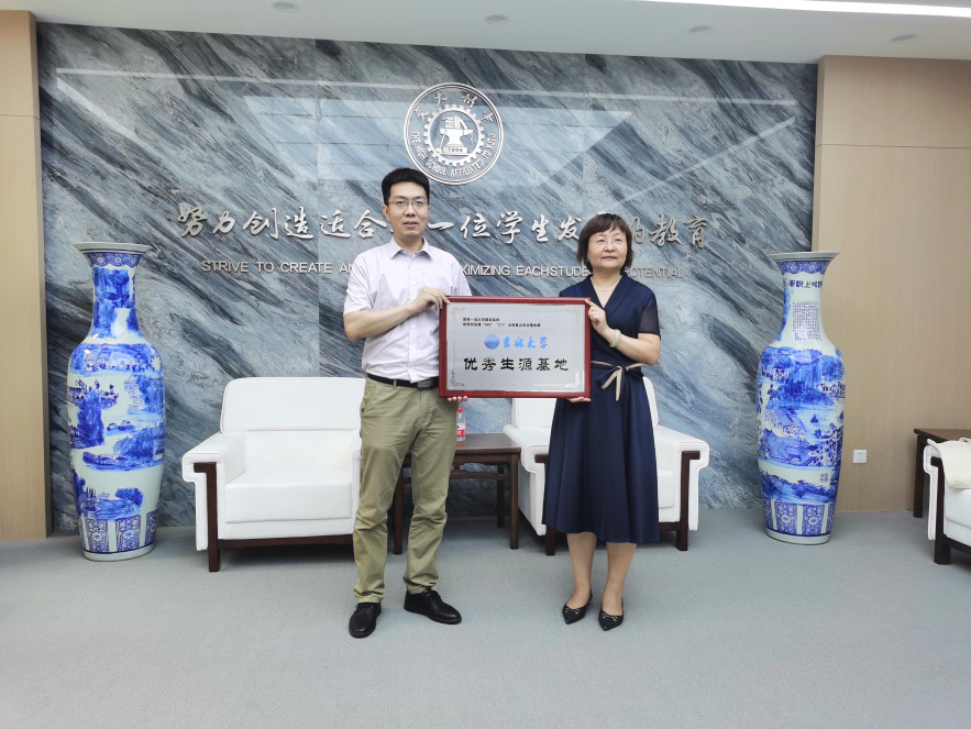 紧接着潘振等3人赶赴曲江二中,参加了曲江二中举行的座谈会暨授牌仪式,曲江二中是2019年由政府投资高起点高标准建设的一所完全中学,参加座谈会曲江二中董事长朱琳瑛、副董事长孔若平、校办主任陈希璇、教务处主任张亚权、教务处副主任张倩,太阳集团tyc539党委副书记潘、唐明祥教授级高工、张祥辉副教授、王晶莹讲师,曲江二中董事长朱琳瑛首先代表公司对太阳集团tyc539一行莅临公司表示热烈欢迎。随后,朱董事长从曲江二中建校历程、办学特色、团队结构、办学成绩等向太阳集团tyc539一行做了简要介绍。朱董事长表示,加强中学与大学之间的交流与合作,对拓展员工视野,促进员工多元发展有着重要作用。希望通过授牌仪式,两校能够进一步加强沟通交流,共同提高育人质量,为国家建设输送更多优秀人才;随后,太阳集团tyc539太阳集团tyc539党委副书记潘振从公司历史、专业设置、人才招聘等方面介绍了太阳集团tyc539的培养模式和学科优势。潘书记表示,此次与曲江二中共建优秀生源基地,不仅拉开了两校合作发展的序幕,也为两校后续深入合作打下了良好的基础。随后,潘书记为曲江二中授“优秀生源基地”牌匾,唐明祥教授在讲话中提到,此次授牌仪式,是太阳集团tyc539与曲江二中生源联系的进一步确立,相信两校能够以优秀生源基地的建立为契机,不断提升两校办学质量和吸引力,期待曲江二中为太阳集团tyc539乃至更多高校培养更多的优秀高中毕业生。