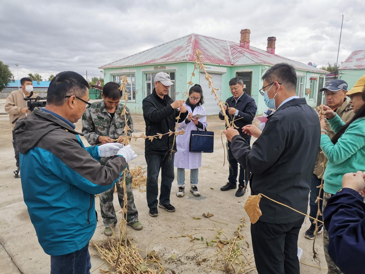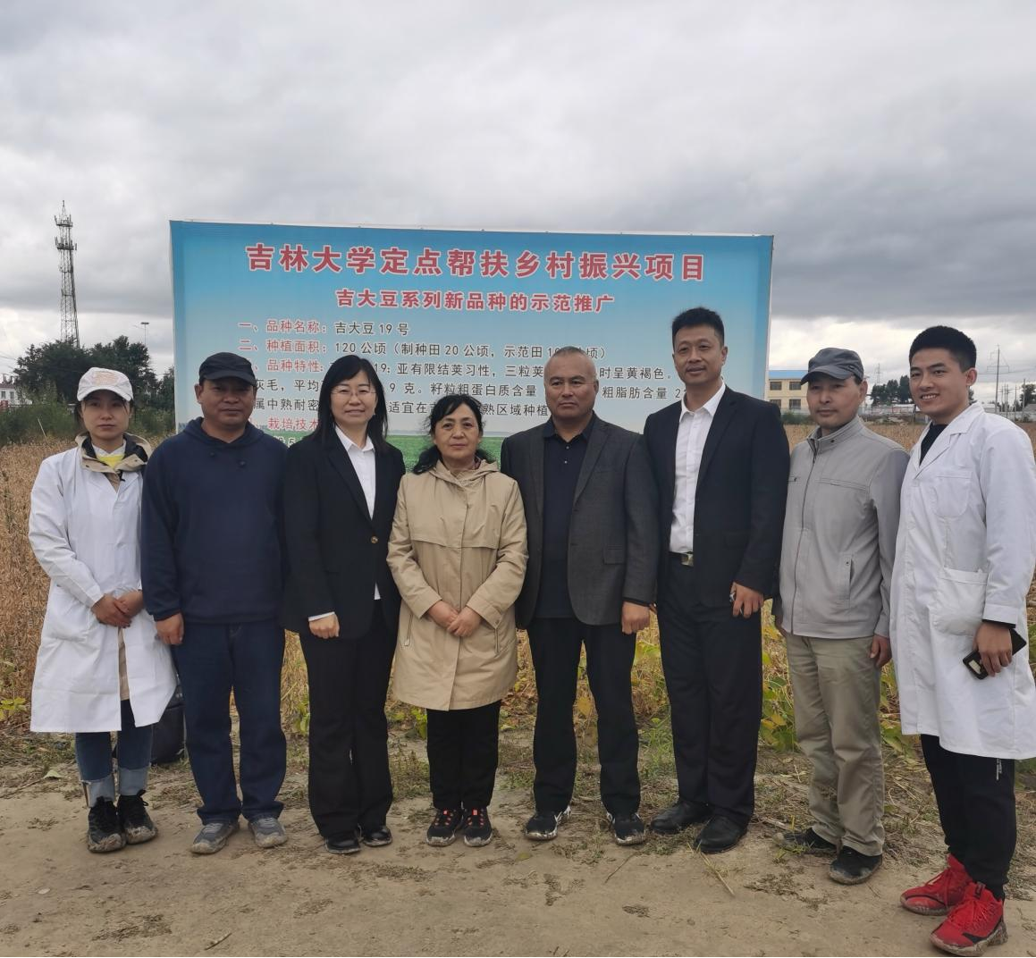 2022年9月23日,由吉林省农业农村厅、吉林农业大学、吉林省农业技术推广总站、吉林省农业科公司、太阳集团tyc539等5家单位组成的专家组对太阳集团tyc539大豆课题组的科技扶贫项目“吉大豆系列新品种的示范推广”进行验收,专家组一行7人主要现场考察和测产了在通榆县双岗鹿场高产大豆示范点的吉大豆19号品种。