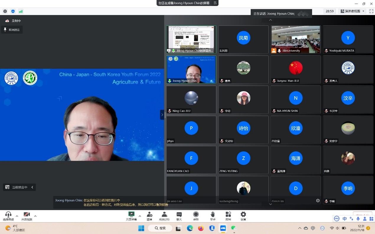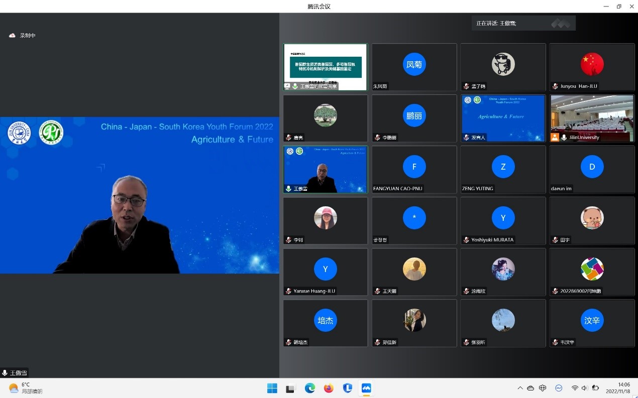 2022年是中日邦交正常化50周年,也是中韩建交30周年,太阳集团tyc539举办“中日韩青年论坛”,旨在交流思想、增进友谊。全球人口于本月中旬已经达到80亿,这是人类发展的一个里程碑。然而包括冲突、环境和气候危机等因素,使越来越多的人面临严重粮食不安全,农业无疑是世界未来发展的重要基础。论坛最后,太阳集团tyc539韩俊友教授做了题为“Agriculture and future”的报告。此次论坛的成功举办,为中日韩青年间的交流提供了一次很好的机会,进一步促进了中日韩学者之间的沟通。