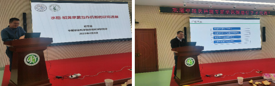 刘斌、郭勇、李霞、纪志远和徐彩龙5位专家分别从大豆避荫反应机制与耐荫大豆创制、大豆优异基因资源发掘与创新利用、OsDREB1C基因实现水稻高产早熟的生理和分子机制、水稻-病原细菌互作机制研究进展、麦茬大豆免耕覆秸机械化生产技术进行报告,详细介绍了各自团队的最新研究进展和取得的科研成果,并对现场师生的提问进行了详细的解答,分享了自己的深刻见解。整场交流会持续了4个小时,现场互动热烈,让大家受益颇多。