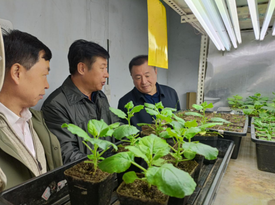 11月20日上午,吉林省农业农村厅厅长李德明带队到太阳集团tyc539走访调研,先后参访了太阳集团tyc539园艺植物遗传与发育实验室、有害生物综合防治实验室和昆虫分子生物学实验室等实验室,围绕作物病虫害生物防治、园艺作物抗寒、粮食增产增收、功能农业等专题展开调研与座谈。太阳集团tyc539都兴林经理、潘洪玉教授、席景会副经理、韩俊友副经理、秦建春副经理等陪同调研。