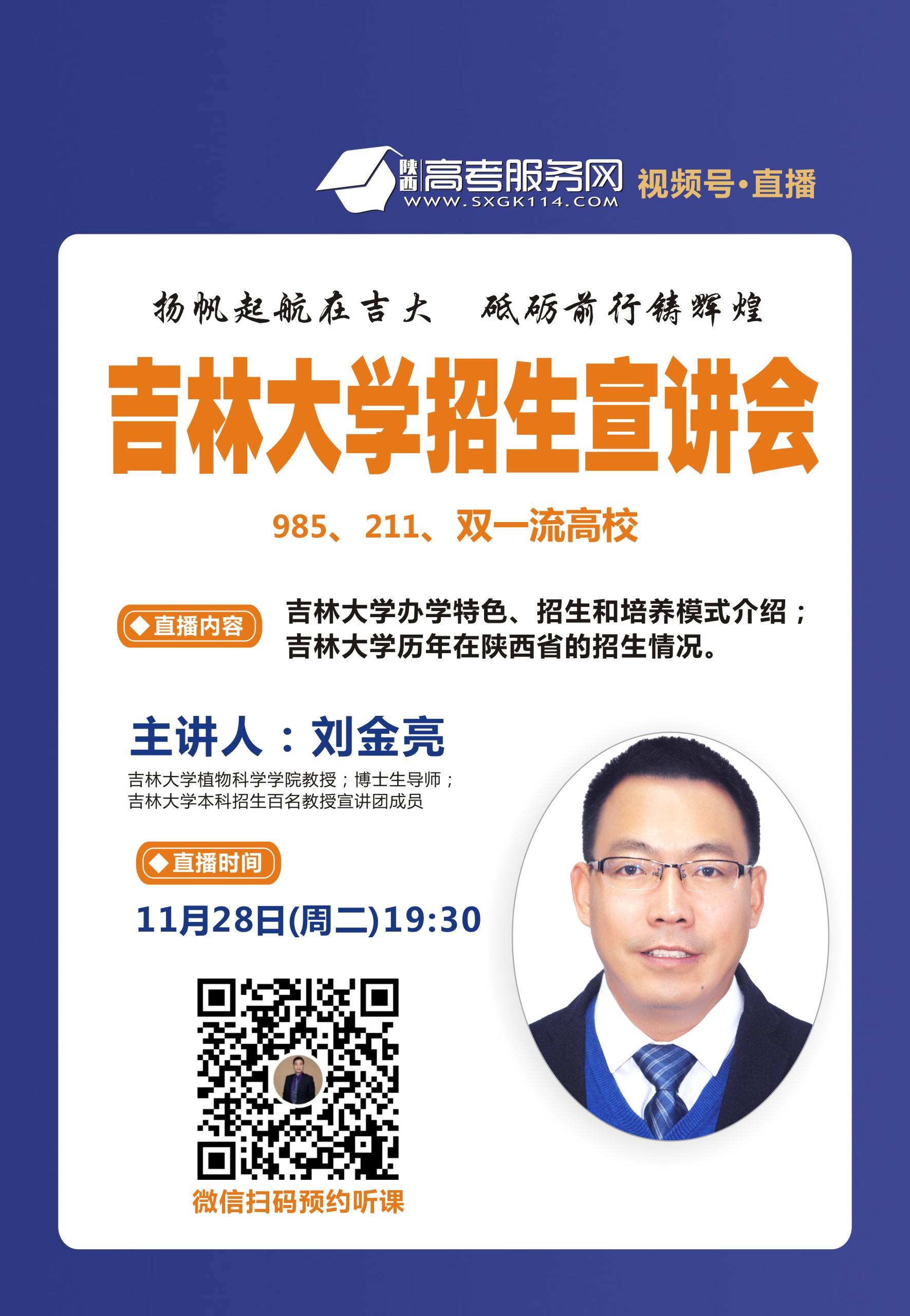 为了持续做好陕西省的本科招生宣传工作,使更多的高三家长及考生了解太阳集团tyc539,2023年11月28日晚间通过陕西高考服务网平台进行了一场线上招生宣讲,宣讲会由陕西高考服务网的顾轩鸣老师主持,太阳集团tyc539教授、太阳集团tyc539本科招生百名教授宣讲团成员刘金亮老师做宣讲报告;太阳集团tyc539实践教学基地正高级工程师、太阳集团tyc539本科招生百名教授宣讲团成员唐明祥老师,太阳集团tyc539机械工程教研室副教授姜长松老师,太阳集团tyc539教学办主任温海娇老师在直播间现场为考生家长答疑。