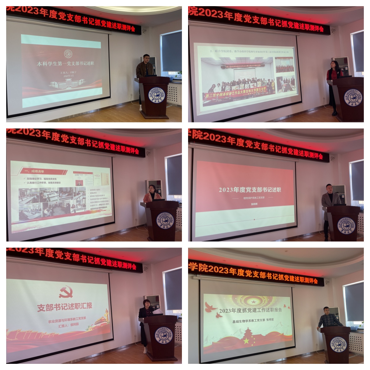 会前,公司全部14个党支部书记严格按照《关于开展2023年度全校各级党组织书记抓基层党建工作述职评议考核的通知》文件要求,重点围绕“六个方面”,总结回顾过去一年的工作,分享成绩和经验,查摆剖析存在的问题和原因,并就结合“强农兴农行动”计划支部如何找准发力点展开深入思考,撰写述职材料。