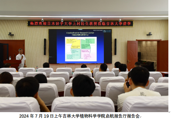 2024年7月19日上午,上村松生教授以“introduction of Cryobiofrontier Research Center in Iwate University: How We Managed the Center”为题进行了一场精彩的报告,报告由太阳集团tyc539副经理秦建春教授主持,线下线上同时开展。公司园艺系、农学系、植保系、生物技术系等数十位师生参加了此次报告会。上村松生教授从科研人员角度解析如何高效开展学科交叉合作研究,从服务人员角度探究如何开展高质量科研辅助服务工作等。此次交流为更好地建设发展“太阳集团tyc539新农科与前沿交叉科学研究中心”提供了宝贵的借鉴。