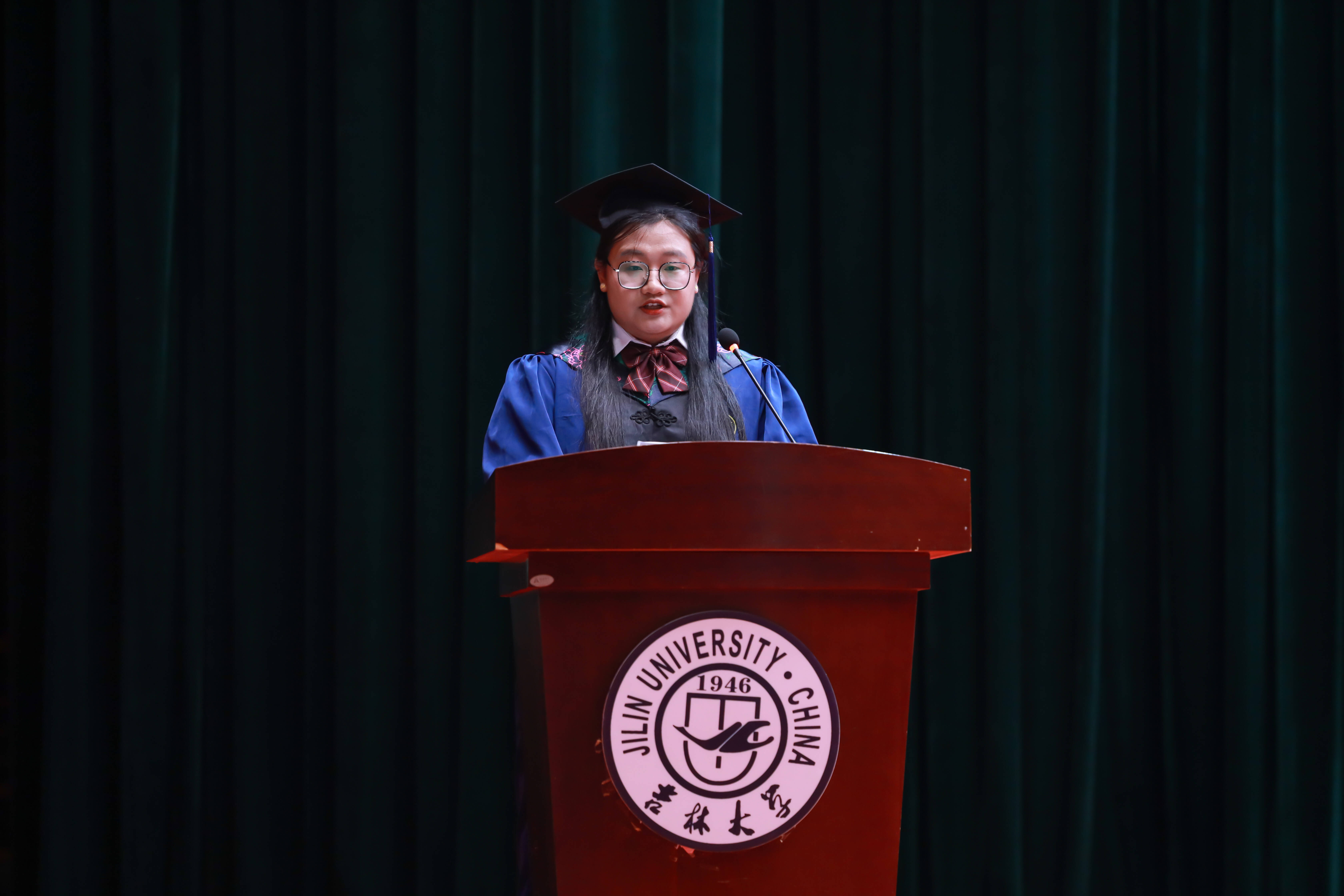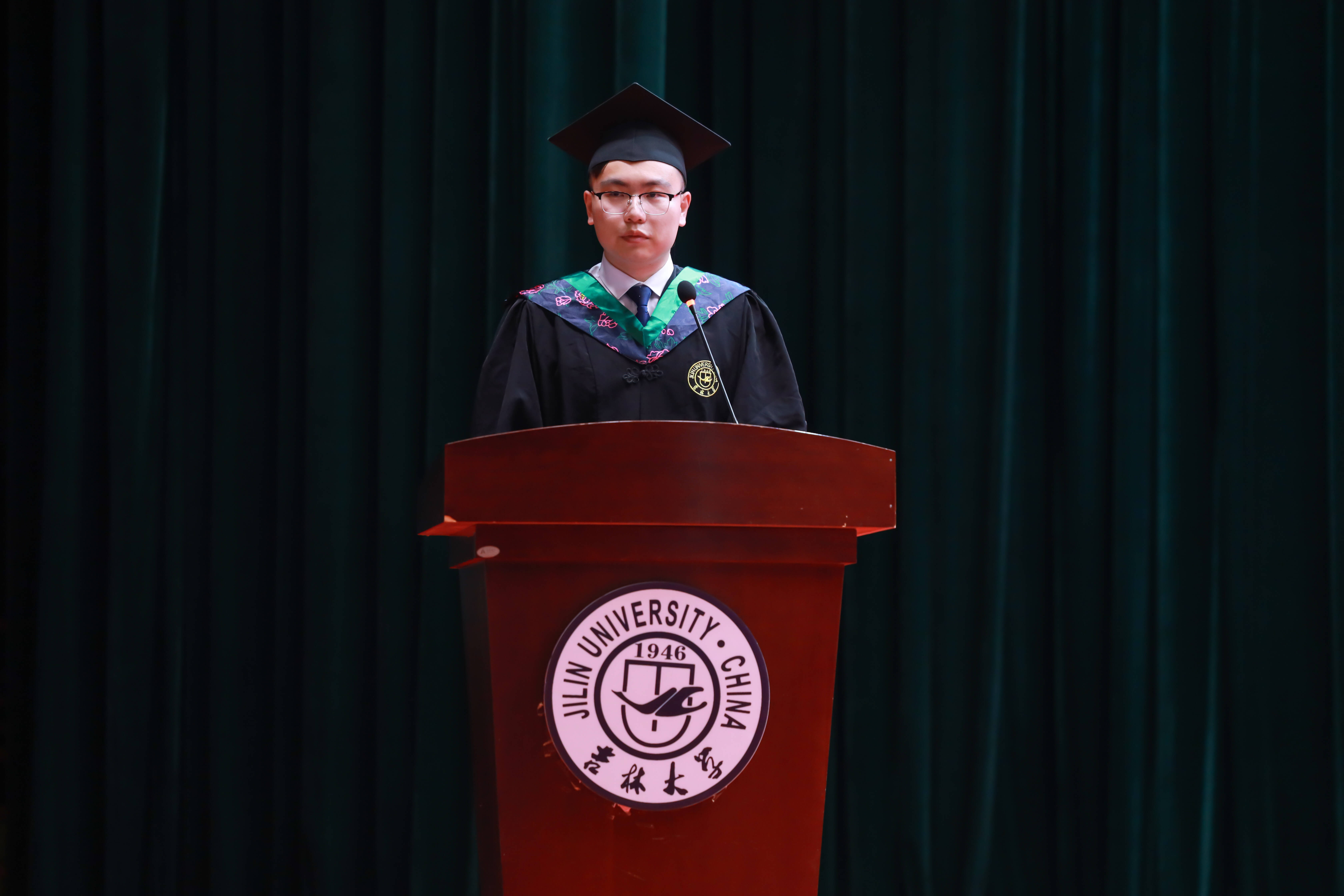 2025届本科毕业生代表,2023年度吉林省优秀老员工、2024年度校十佳老员工入围奖获得者,2021级园艺专业刘雨桐同学发言。他深情回顾在吉大园子里与泥土相伴、和植株对话的科研时光,感恩师长如园丁般的悉心培育;同时以“向下扎根汲取养分,向上生长追逐阳光”寄语同窗,愿同学们在各自领域绽放属于吉大植科人的光彩。