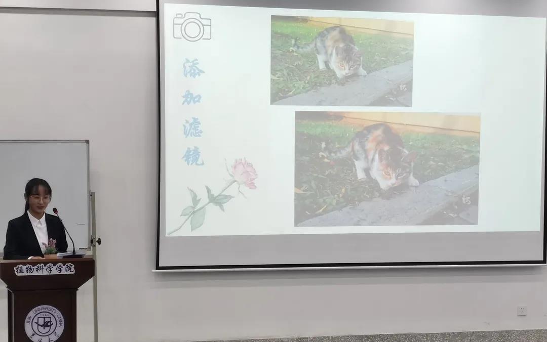 最后,新闻部王婷婷同学与大家分享了拍摄新闻照片时所需注意的角度、构图、光线、人物与背景关系等方面的经验,同时讲述了当遇到光线不足、人物遮挡问题时的解决办法,并利用大量图片进行了对比讲述。
