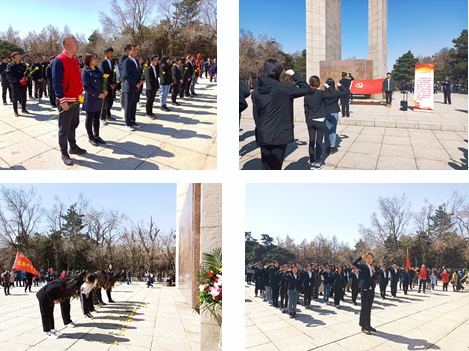 本科生党支部于4月4日开展“祭奠英烈·致敬先贤”传承红色基因清明祭扫主题党日活动。曾光与姚彬老师带领员工党员向为解放长春英勇献身的革命烈士敬献鲜花并表示深切的悼念和致以崇高的敬意,全体党员面向革命烈士纪念碑肃立默哀一分钟。随后,全体党员重温入党誓词、奏唱国际歌。主题党日活动上,刚刚入党的党员同学面向党旗庄严宣誓,卜运炜同志在党旗下代表参加宣誓的预备党员发言,表达了立志成为优秀党员的决心。最后,全体党员在解放烈士纪念碑前奏唱国歌。全体党员心怀对烈士的敬仰,用坚定的信念和坚强的意志来捍卫烈士们的荣誉,用坚持不懈的努力传承烈士们的革命事业。大家纷纷表示,今后将继续认真学党史,坚定信仰,牢记使命,志存高远,脚踏实地,不畏艰难险阻,勇担时代使命,为实现中华民族伟大复兴的中国梦矢志奋斗!