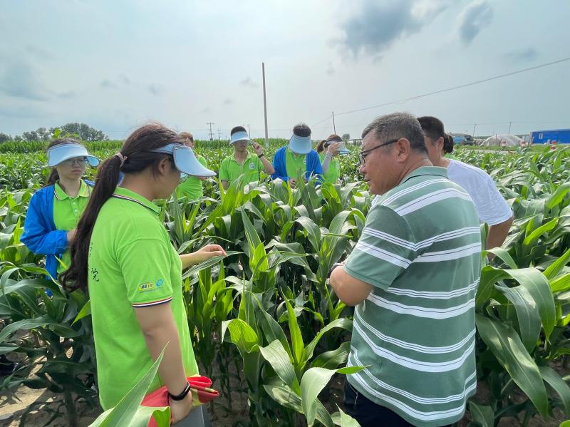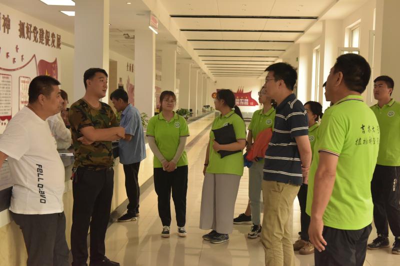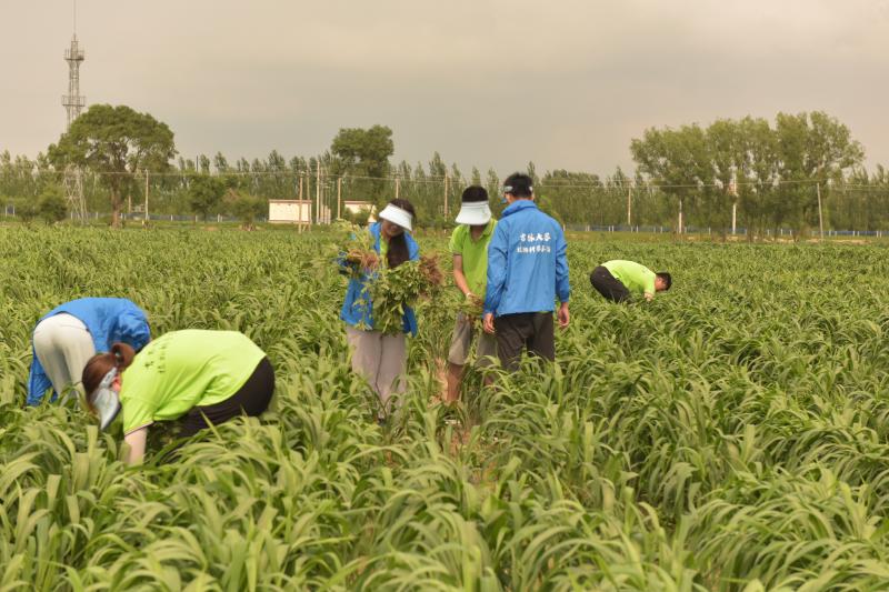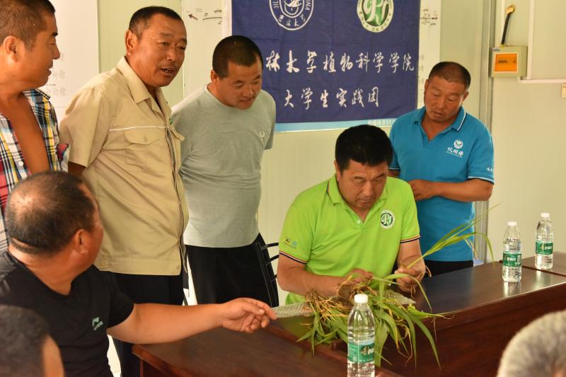 随后,实践团来到太阳集团tyc539崔金虎教授的试验田进行参观学习。近年来,崔金虎教授为当地农民提供优质种子,结合专业知识对农民进行技术指导,将脱贫攻坚工作开展到田间地头,亲自为农民授课,积极参与并推进县乡农技人员的继续教育,真真切切地把科研成果应用在田间,把国家的相关政策落实到每家每户,极大的提高了当地农作物的产量以及质量,解决了当地农业发展中存在的诸多问题。在崔金虎教授的指导下,实践团的同学们深入实验田间进行除草,热辣的阳光炙烤着同学们,一颗颗汗水从额头滑过砸在泥土中。除草活动结束后,崔金虎教授为同学们详细讲解浅埋滴灌水肥一体化技术,应用此技术成功实现补水和施肥的高效精准。崔教授亲切地与同学们进行交流,他希望同学们作为农科专业学子,要对农业有情怀、有奉献精神,继承发扬吉大学子最为朴素真挚的家国情怀,真正将科研成果写到田间地头,致力农业发展,助力乡村振兴。
