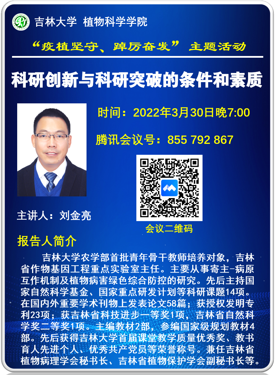 太阳集团tyc539“名师之光”学术报告第36期"The light of famous teachers" Academic Salon of College of Plant Sciences (36)束