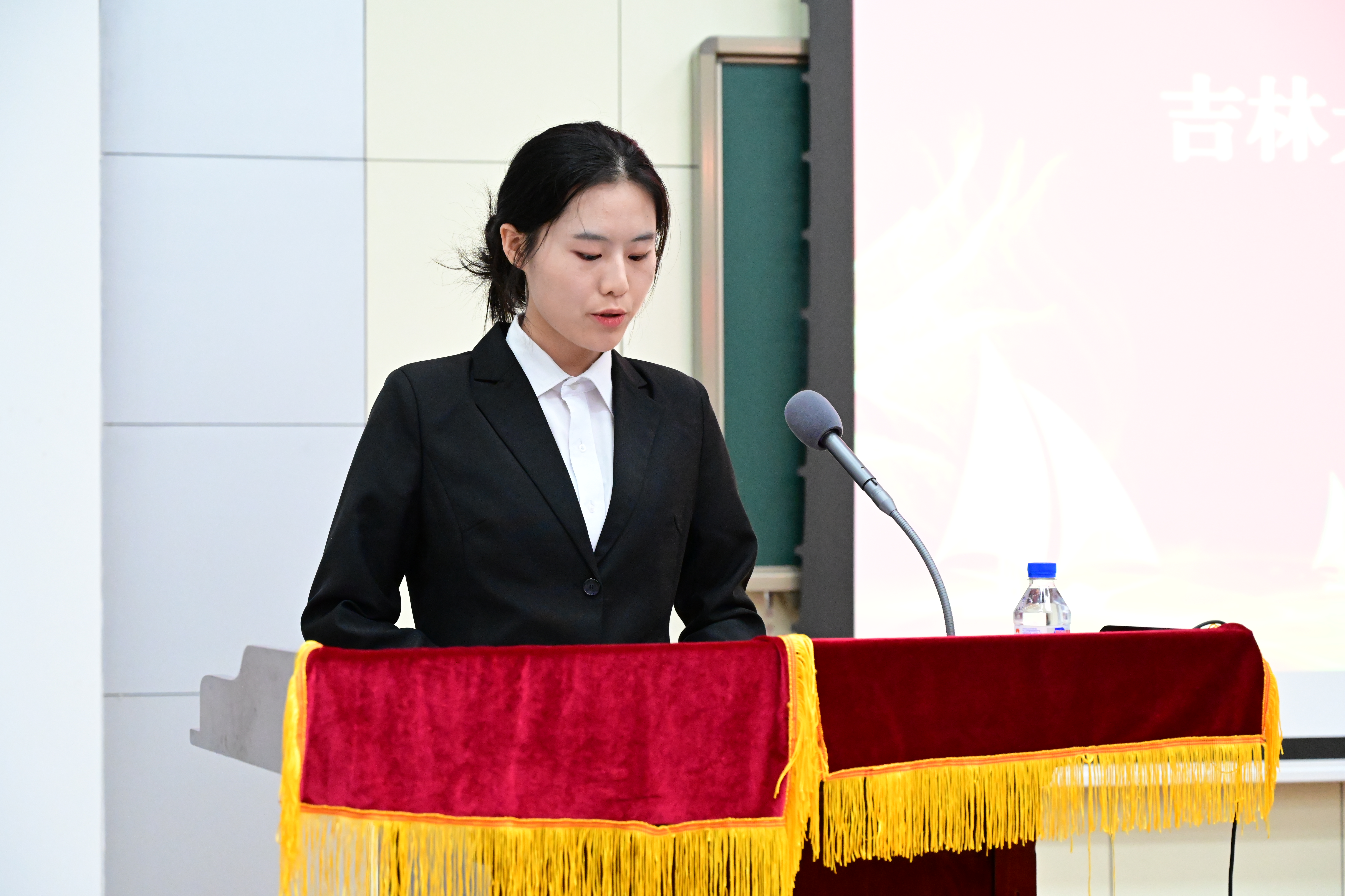 2021级新生郭璞代表公司全体新生发言。她向辛勤付出的公司领导、老师、学长和学姐表达了衷心的感谢和由衷的敬意,就新一代植科人应具备的家国情怀,个人素养,精神品质做出展望,倡议2021级新生在太阳集团tyc539的这片热土上,同心、同德、同行,展现植科新生承前继后、砥砺前行的信念,日益进取,勇于创新,久久为功,善作善成,扬鞭策马,筑梦吉大。