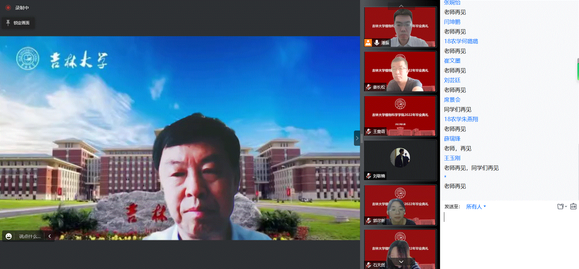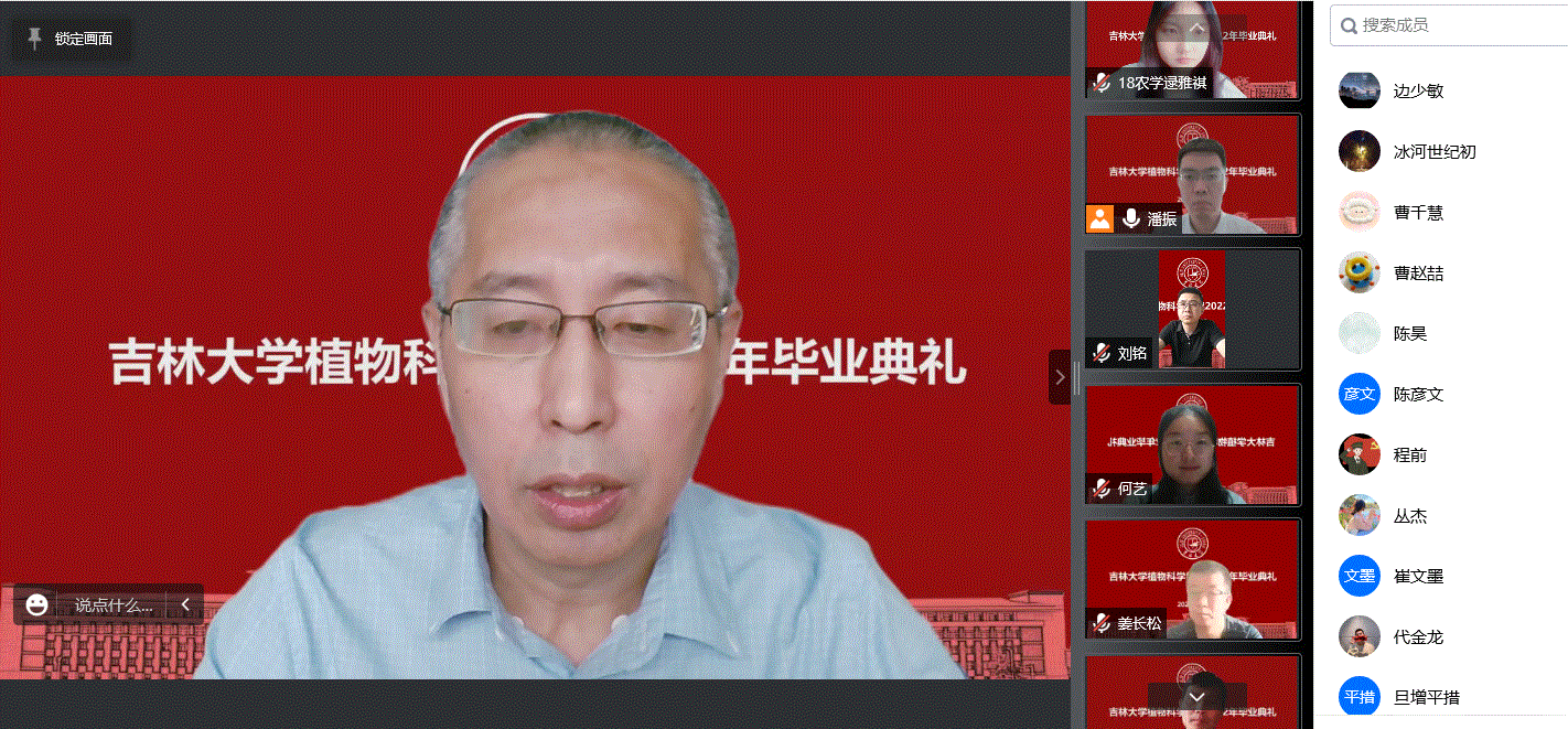 毕业本科生代表、2018级植物保护专业本科生苏梓巍,毕业研究生代表、博士研究生朱有成同学分别发言,表达了对母校深情的眷恋,送上了自己最美好的祝愿。本科生班主任代表张祥辉老师、研究生导师代表尚庆利老师对同学们深情寄语、送上祝福。