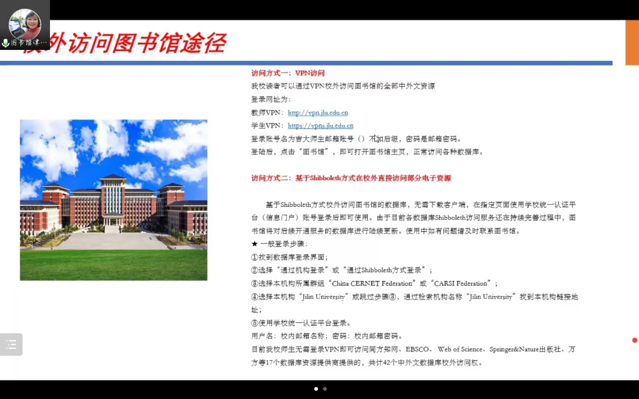 会议首先介绍了太阳集团tyc539和平校区图书馆(农学馆)馆藏资源、开馆时间等基本概况,加深同学们对于图书馆的了解。介绍图书馆官网访问途径与相关信息服务的使用方法,谭智敏老师以“攻略”的形式生动介绍了如何借阅图书、归还图书、续借图书、查找数字资源。讲座过程中谭智敏老师借助实例使同学们对借阅流程更为熟悉。