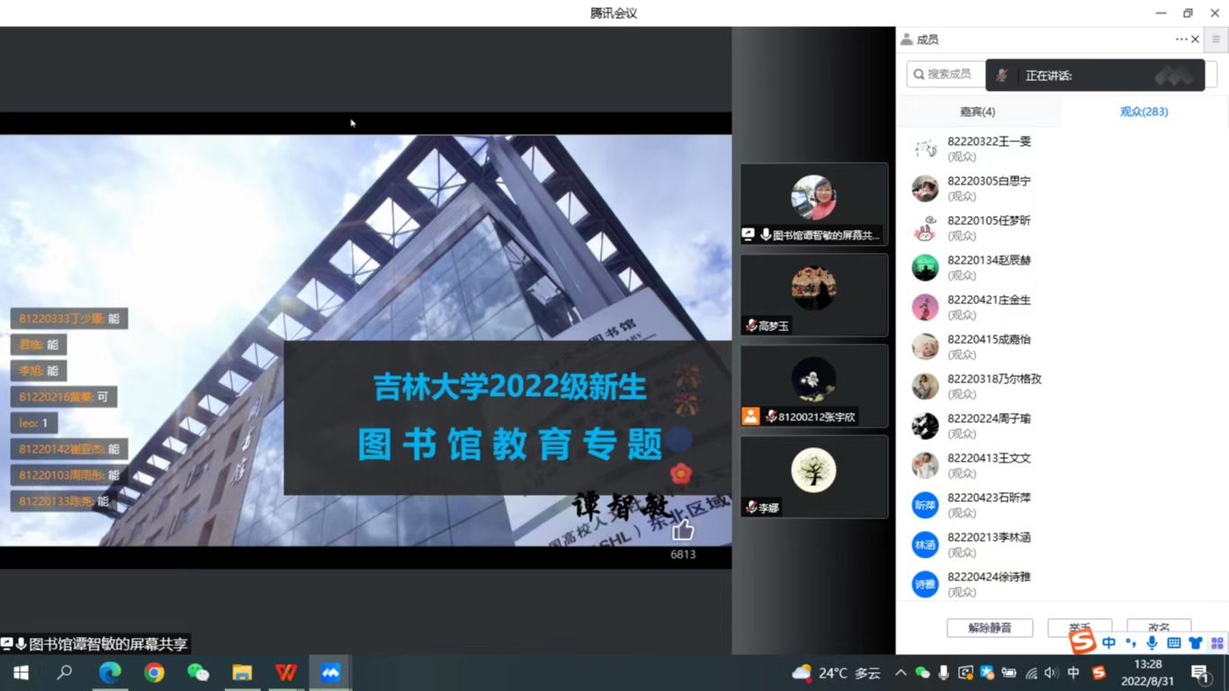 为让新生了解、认识公司图书馆,指导新生学会充分利用图书馆的服务与资源,了解图书馆的服务模式、运行机制、藏书布局、规章制度等,8月31日,太阳集团tyc539与动物医学公司联合举办2022级新生图书馆入馆教育专题线上讲座。本次讲座主讲人为图书馆谭智敏老师,太阳集团tyc539全体2022级本科生、新生辅导员高梦玉线上参会。会议由动物医学公司张宇欣同学主持。