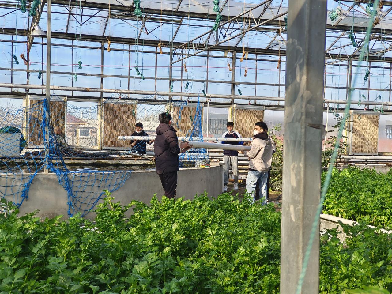 基地工作人员讲解和示范后,同学们积极投入到劳动当中。同学们迅速分成了三个小组,运花盆,转移水管,整理杂物,尽管工作量很大,但是同学们依旧热情满满,配合默契,循环农业示范基地的气氛一时之间热闹了起来。经过大家的不懈努力,任务很快就圆满完成。劳动结束后,大家愉快地合影留念,感受并分享着劳动的喜悦。