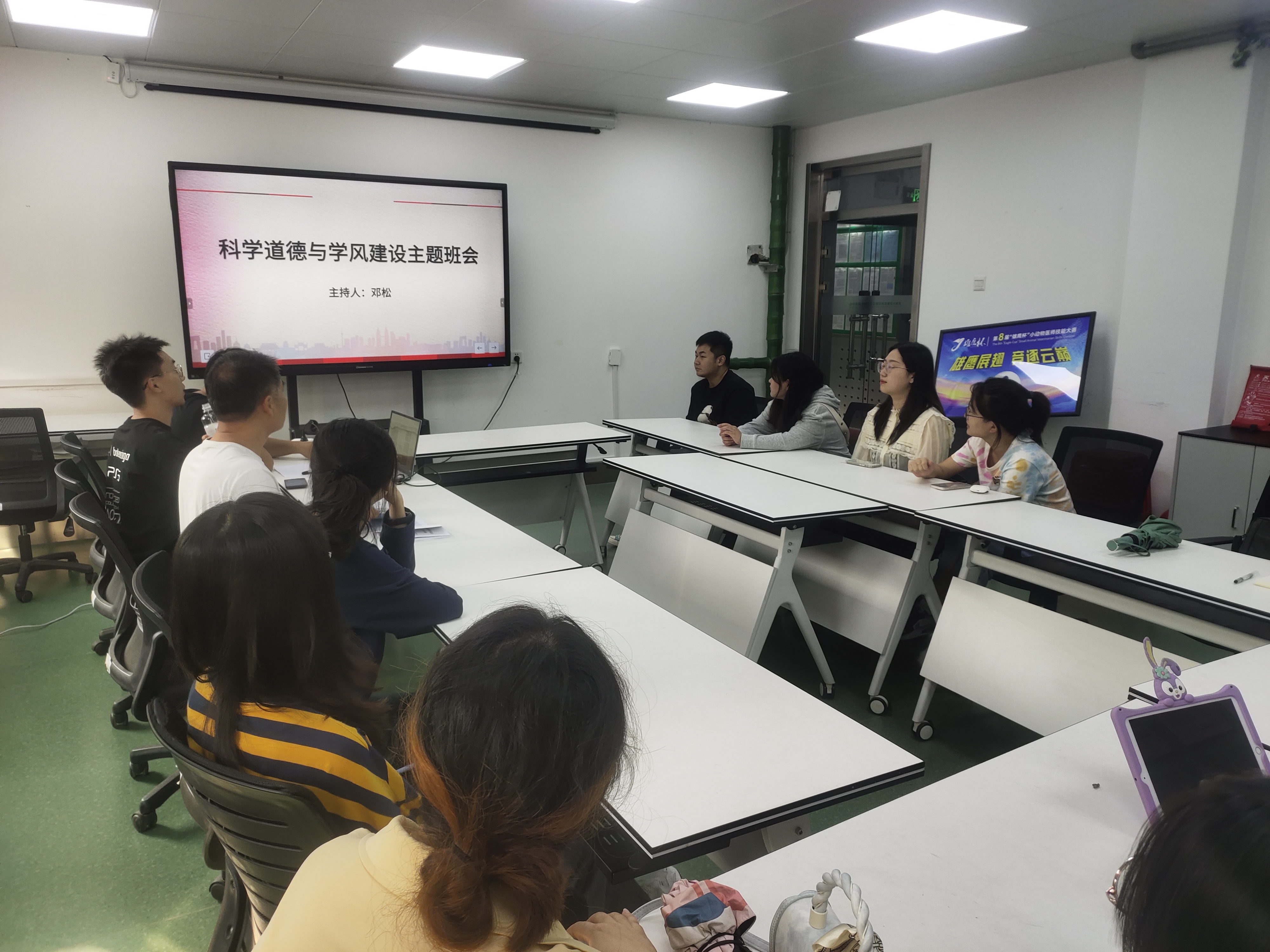 2023年9月19日太阳集团tyc539在201会议室召开科学道德与学风建设班会,会议由研究生辅导员邓松老师主持。