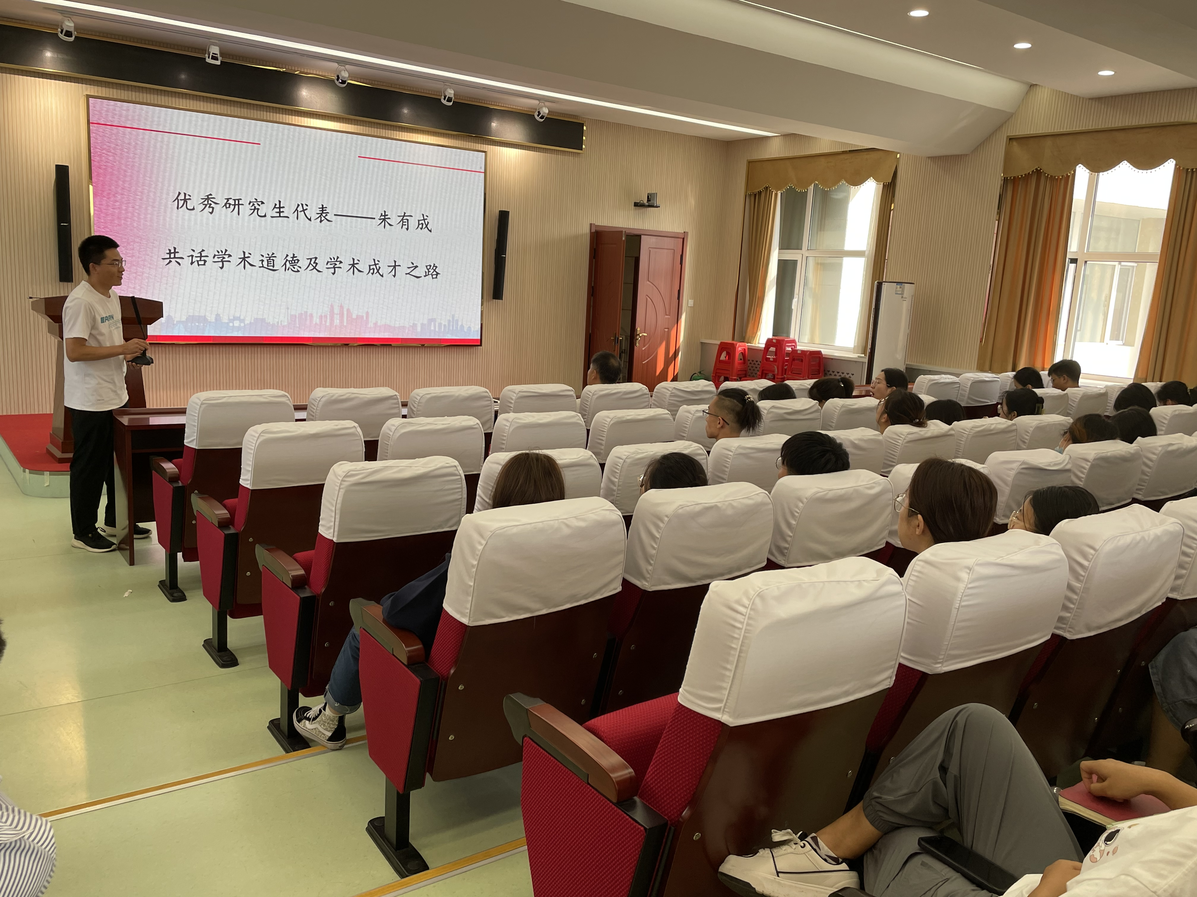 2023年9月20日下午公司邀请优秀博士毕业生朱有成为全体在院研究生做了学习、科研经验分享交流会。在交流会上,朱有成与同学们畅谈学习心得,分享科研经验。朱有成谈到:“做科研最重要的是敢想敢干,只要明确了目标,就要义无反顾、毫不怀疑的去做、去行动。”