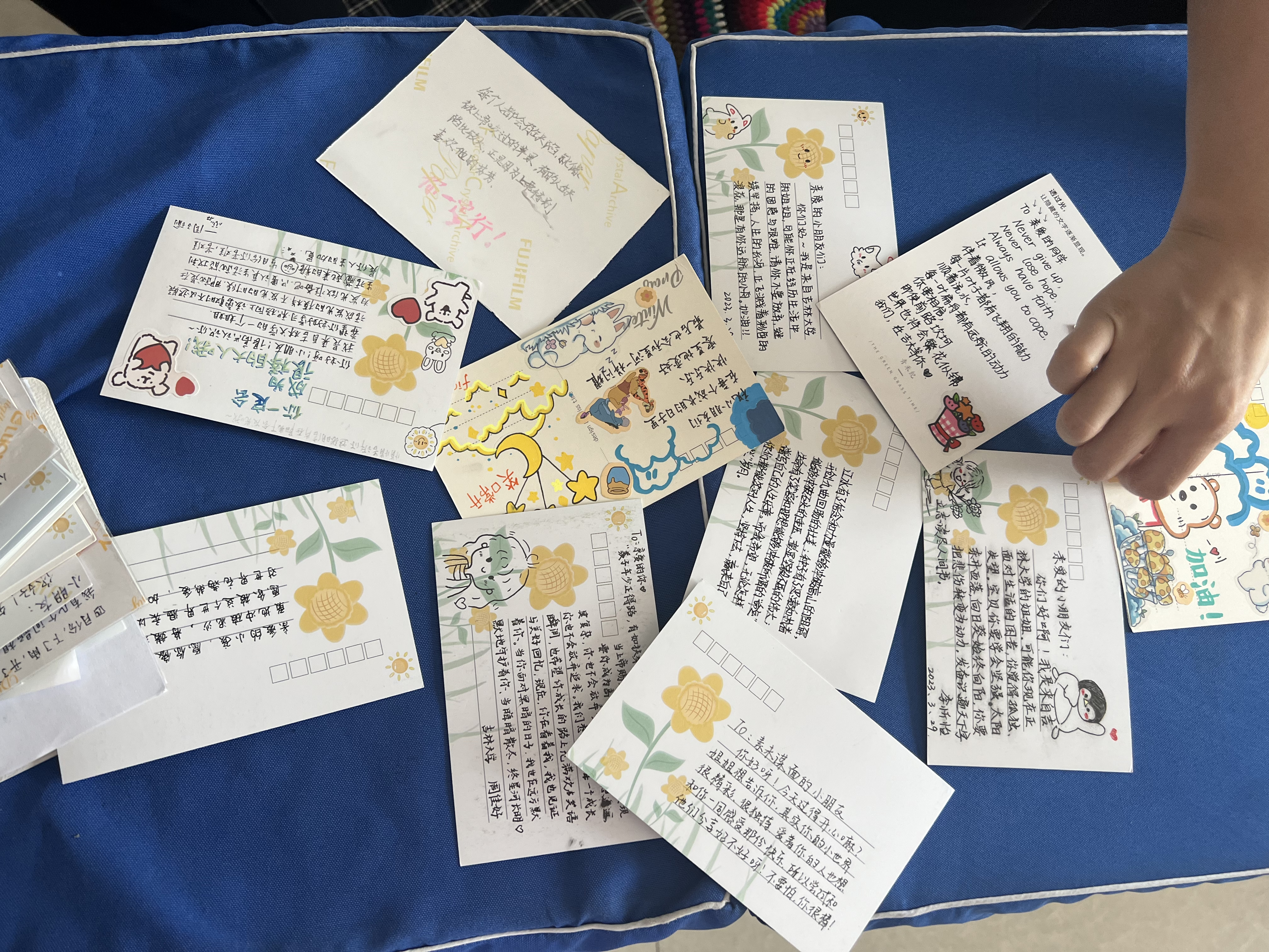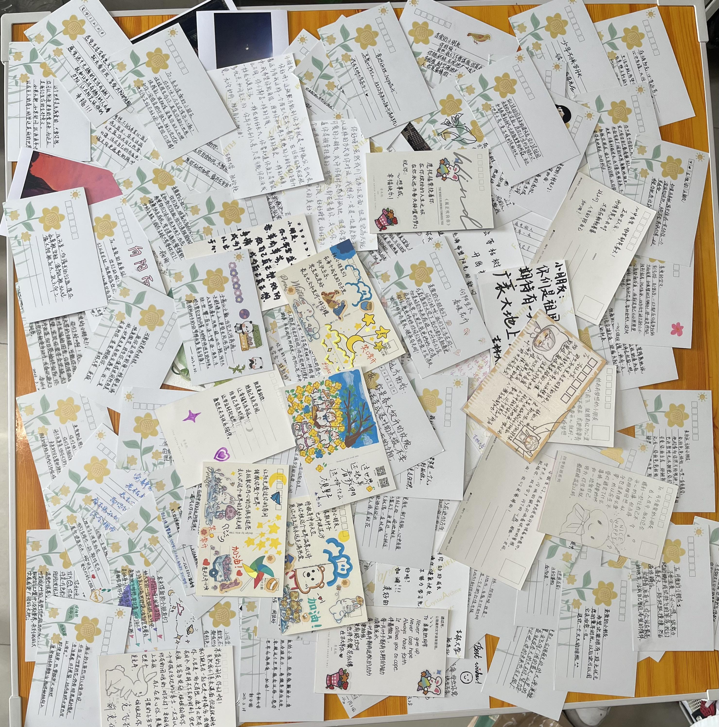 他们收到了我们送给他们的摄影作品、明信片和爱心物资,我们也收到了来自他们的回复。一张张明信片充满了我们对他们的鼓励与支持,一幅幅摄影作品承载了我们对他们的关心和希望。收到礼物的他们也感受到了来自我们的温暖,对我们的奉献,表达了感谢。文字是有力量的,图片是有灵魂的,而与素昧平生但渴望陪伴与温暖的灵魂建立一种联结,是治愈而温暖的……通过这种最原始的邮寄方式,怀揣着真诚跨越千里,与他们保持着独特的联系让他们感受到生活的美好与人世间的温暖。各位Jluer们,吉人行天下,暖意沁童心,感谢同学们参加我们这次公益活动!