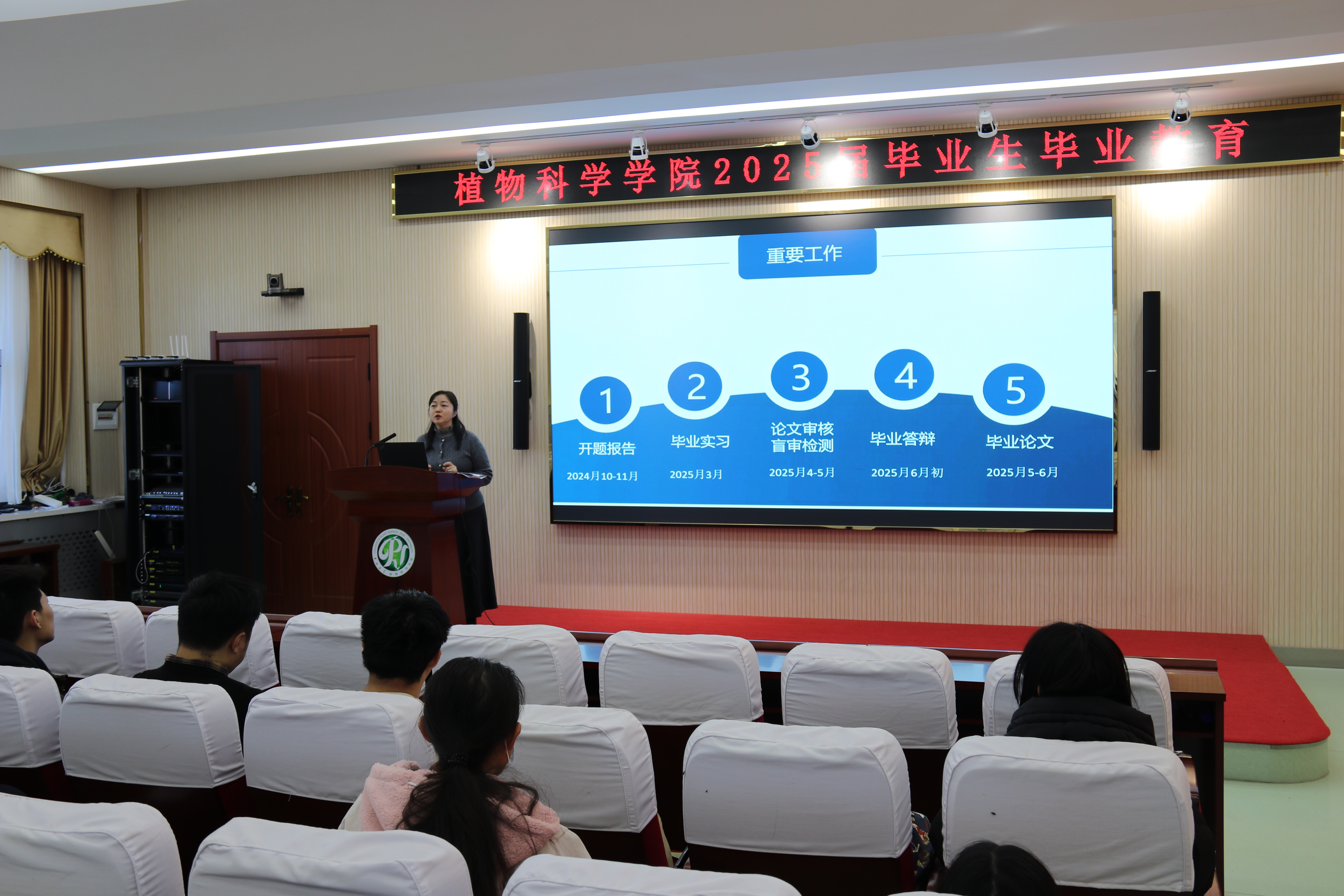 公司员工办公室、教务办公室全体成员,2025届本科毕业班全体班主任,2021级全体本科生参加本次会议。